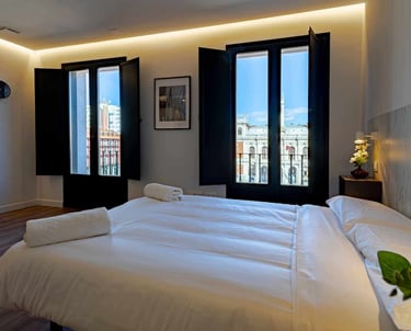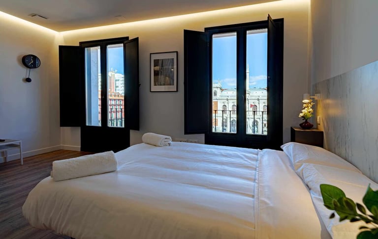 Comentario: Nuestra recomendación personal. Son apartamentos estilo Airbnb pero respaldados por una agencia hotelera. Situados en pleno centro de Valladolid (Plaza Mayor), a 5 minutos de donde saldrán los autobuses (Plaza Poniente). Tienen opción para apartamentos de 4 personas. Estamos trabajando en conseguir algún tipo de descuento con ellos.